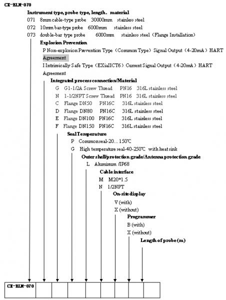Type:CX-RLM-070 series of guided wave radar material level gauge