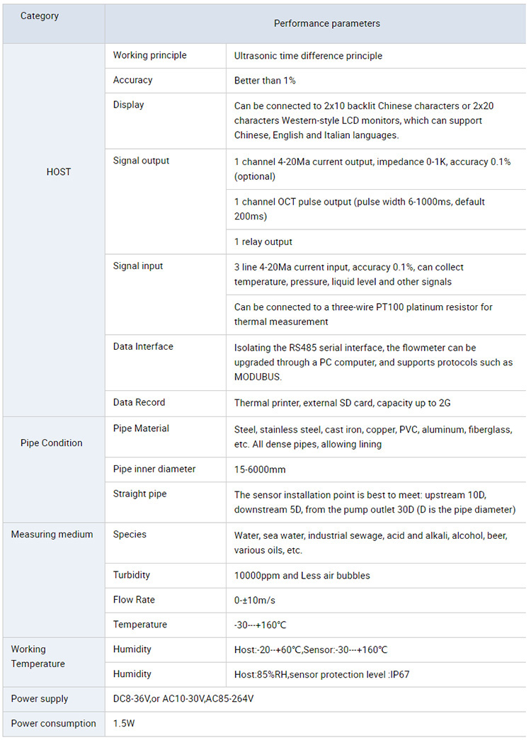 Illustrate:Ultrasonic flowmeter is a non-contact instrument,Not only can the media flow measurement with large diameter can also be used to measure is not easy to contact and observation of medium.Its measuring accuracy is high, the interference is almost not affected by various parameters of the measured medium.In particular, can solve the strong corrosive, non conductivity, radiation and flammable and explosive medium flow measurement.